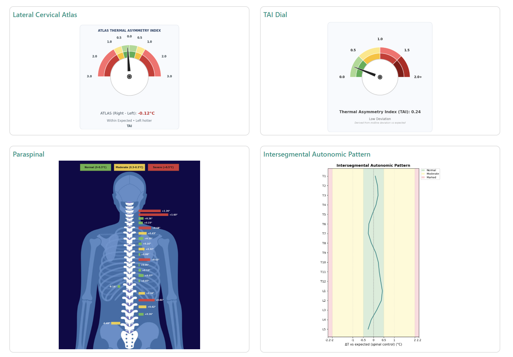 Our system advances chiropractic thermography by combining modern, high-resolution radiometric imaging with the foundational principles of chiropractic analysis. The result is a streamlined, clinically practical approach that is both easy to implement and easy for patients to understand.